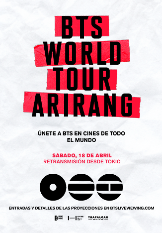 emblemáticas en Goyang (Corea del Sur) y Tokio (Japón), lo que representa un récord histórico en cuanto a fechas de gira para el género del K-pop. No te pierdas la oportunidad de vivir dos conciertos completos, transmitidos en salas de cine de todo el mundo. Bajo el título ARIRANG, la gira mundial de BTS presenta su quinto álbum completo, que refleja la identidad del grupo desde una perspectiva honesta y emociones universales como el anhelo y el amor profundo, plasmadas en una música que los